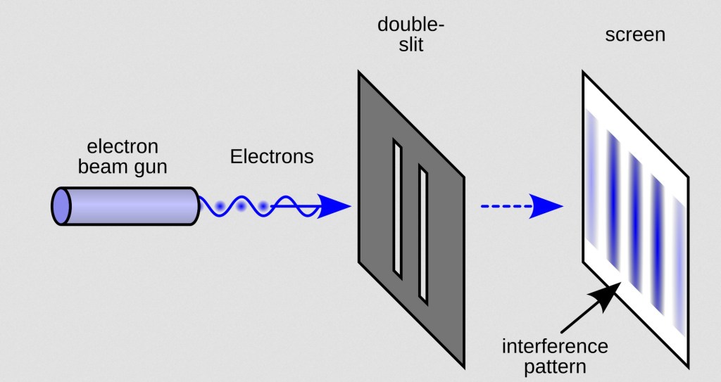 Figure 1. A double-slit schematic showing interference patterns and detection. Source: adapted from Wikipedia (CC BY-SA).