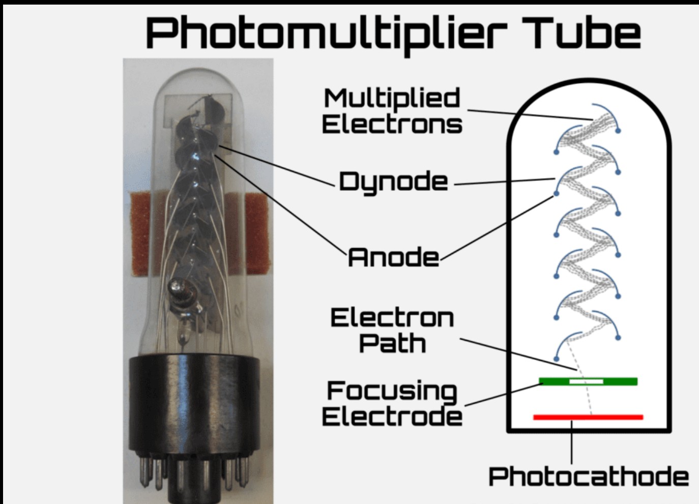 In the double-slit example analyzed in the paper, a single microscopic interaction—an electron scattering a photon—can initiate a cascade inside a detector (like the photomultiplier below). That cascade involves many degrees of freedom: photons, electrons, electronic circuits, and eventually macroscopic readouts.